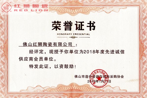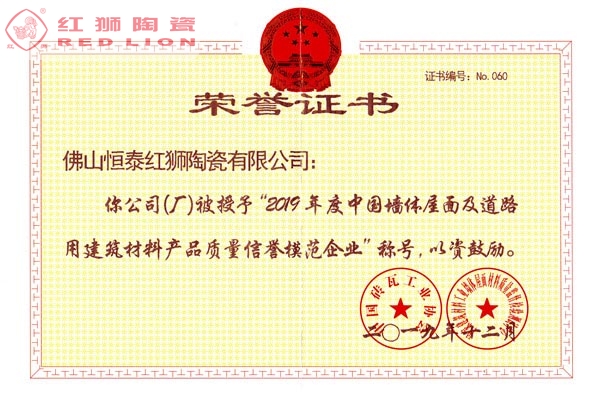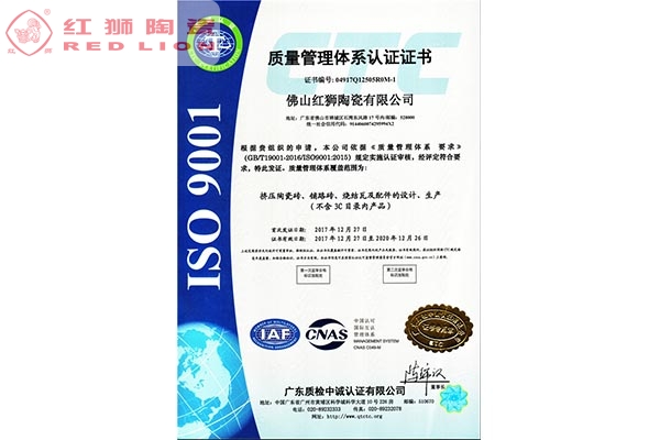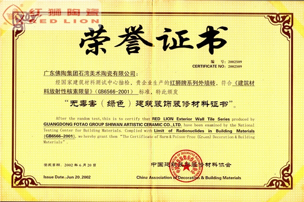 我司是廣東省內唯一擁有“非物質文化傳承”技藝的建材陶企,曾連續14年被評為廣東省重合同守信用企業;1999年起持續通過ISO質量管理體系認證、ISO環境管理體系認證、OHSAS職業健康安全管理體系認證;2002年成立了經佛山市科學技術局、佛山市發展計劃局、佛山市經濟貿易局認證的佛山市工程技術研究開發中心;2003年“紅獅”牌獲選廣東省著名商標;2005年被佛山市知識產權局授予佛山市知識產權示范企業;2008年被廣東省建筑材料行業協會評為廣東省建材質量信用企業、廣東省建材行業節能減排優秀企業、改革開放30年廣東省建材行業突出貢獻企業;2009年被廣東省科學技術廳評為廣東省民營科技企業、高新技術企業;2009-2018年被評為廣東省清潔生產企業;2017年被廣東省循環經濟和資源綜合利用協會認定為廣東省資源綜合利用企業;2017年作為石灣琉璃瓦制作技藝傳承保護單位列入佛山市非物質文化遺產項目名錄;2017及2018年被授予廣東省名牌產品。