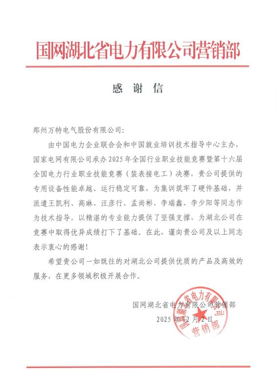 這一封感謝信,不僅代表了客戶對(duì)萬(wàn)特電氣的認(rèn)可,更是激勵(lì)我們不斷創(chuàng)新產(chǎn)品、提高服務(wù)意識(shí)的進(jìn)步源泉。