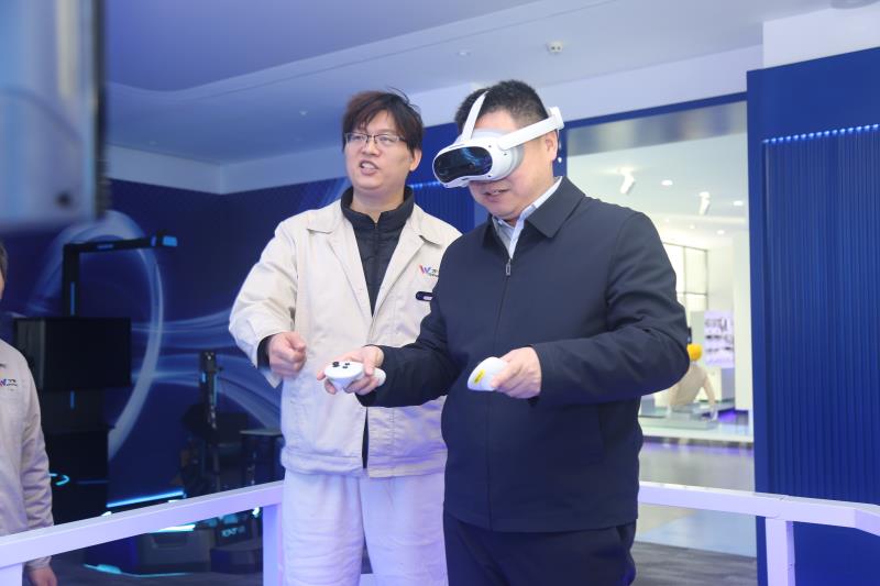 交流期間,學(xué)院一行走進(jìn)萬(wàn)特電氣展廳,沉浸式體驗(yàn)了高空墜落體感裝置、電力安全VR體感裝置、全向移動(dòng)式電力巡視VR體驗(yàn)系統(tǒng)、多人動(dòng)感電力巡線VR體驗(yàn)系統(tǒng)等核心產(chǎn)品。通過(guò)虛實(shí)結(jié)合的互動(dòng)體驗(yàn),直觀感受VR技術(shù)與電力行業(yè)的深度融合,切實(shí)體會(huì)到數(shù)字化技術(shù)為電力安全培訓(xùn)、作業(yè)流程優(yōu)化帶來(lái)的革命性變化與獨(dú)特價(jià)值。