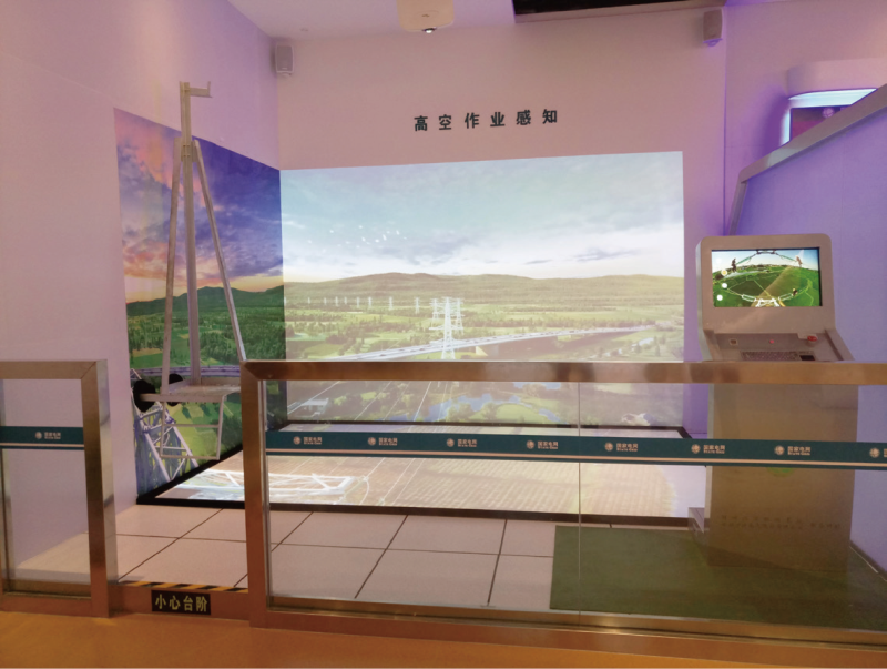 該項(xiàng)目讓學(xué)員親身體驗(yàn)在高空鐵塔上作業(yè)時(shí),由于風(fēng)力的影響人員在鐵塔上擺動(dòng)的感覺(jué),在室內(nèi)搭建鐵塔的一 角供體驗(yàn)人員站立,高度為0.5米,采用VR 技術(shù)佩戴體驗(yàn)式頭盔打造的具有沉浸式體驗(yàn)感覺(jué)的新型體驗(yàn)?zāi)J?。體 驗(yàn)人員仿佛置身于幾十米高的鐵塔上,能夠親身體會(huì)高空作業(yè)的眩暈感,身臨其境的體驗(yàn)高空作業(yè)情形,鍛煉 學(xué)員的適應(yīng)能力,提高高空作業(yè)安全防護(hù)技能。