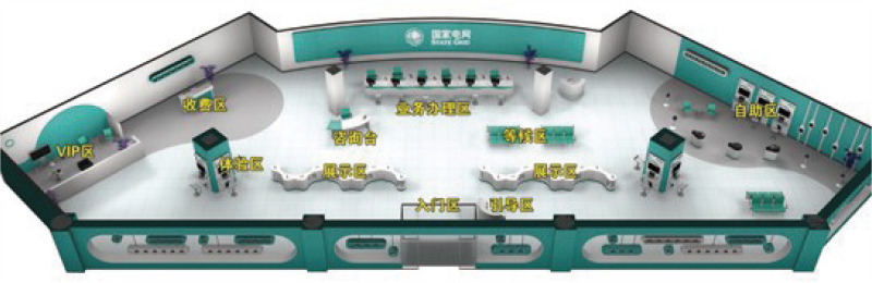 本項目應(yīng)用VR 虛擬現(xiàn)實技術(shù),開發(fā)互動營業(yè)廳虛擬現(xiàn)實場景應(yīng)用,可實現(xiàn)業(yè)務(wù)辦理、故障報修、咨詢服務(wù)、電 費繳納等立體演示功能。
