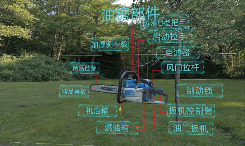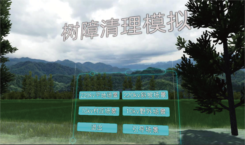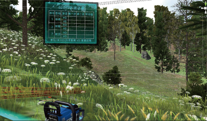 本項(xiàng)目在虛擬場(chǎng)景中搭建輸電線路環(huán)境,按照真實(shí)作業(yè)流程模擬樹障清理的整個(gè)過(guò)程,通過(guò)采用VR 互動(dòng)技術(shù) 為參訓(xùn)人員提供沉浸式的作業(yè)訓(xùn)練環(huán)境;模擬開展真實(shí)的樹障清理工作,對(duì)實(shí)訓(xùn)人員的操作情況進(jìn)行監(jiān)視、 記錄,通過(guò)畫面警示、聲音報(bào)警、文字提示、觸覺(jué)感知等形式,對(duì)操作行為給予實(shí)時(shí)的反饋與警示。